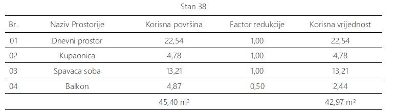 Na prodaju imamo stan u novogradnji ukupne površine 42,97 m2, koji čine dnevni prostor- kuhinja s blagovaonom,jedna spavaća sobe,jedna kupaonica,spremište,natkrivena terasa.