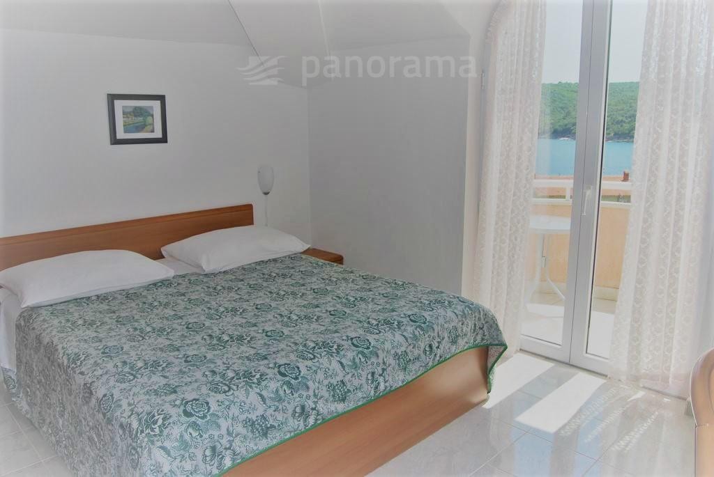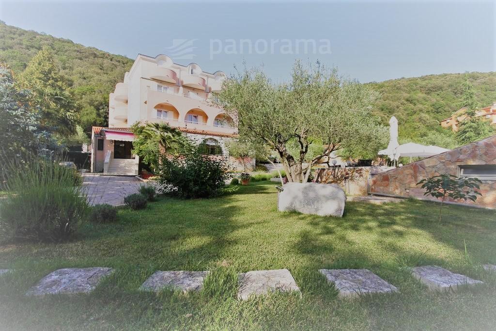 Ovaj obiteljski hotel nalazi se na fantastičnoj lokaciji, samo 50 metara od mora, u prekrasnoj prirodi Istočne Istre. Ukupne je površine 1600 m2, a sastoji se od 24 sobe na 3 etaže (na svakom katu 8 komfornih soba od čega po dvije obiteljske sobe). Svaka soba je klimatizirana i ima balkon s kojeg se pruža divan pogled na morsko plavetnilo. U objektu je potpuno opremljena kuhinja s modernim uređajima, sala za objede od 60 sjedećih mjesta, caffe bar, veliko spremište, kotlovnica, vešeraj... Na prostranoj parceli površine 2809 m2 centralno mjesto zauzima veliki bazen i sunčalište na kojem se nalazi vanjski caffe/coctail bar. Pored bazena, na prekrasno uređenom okolišu, ukrašenim mediteranskim biljem, nalazi se i kongresna sala s pripadajućim wc-om.