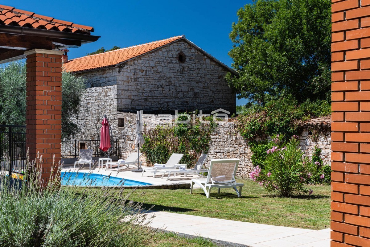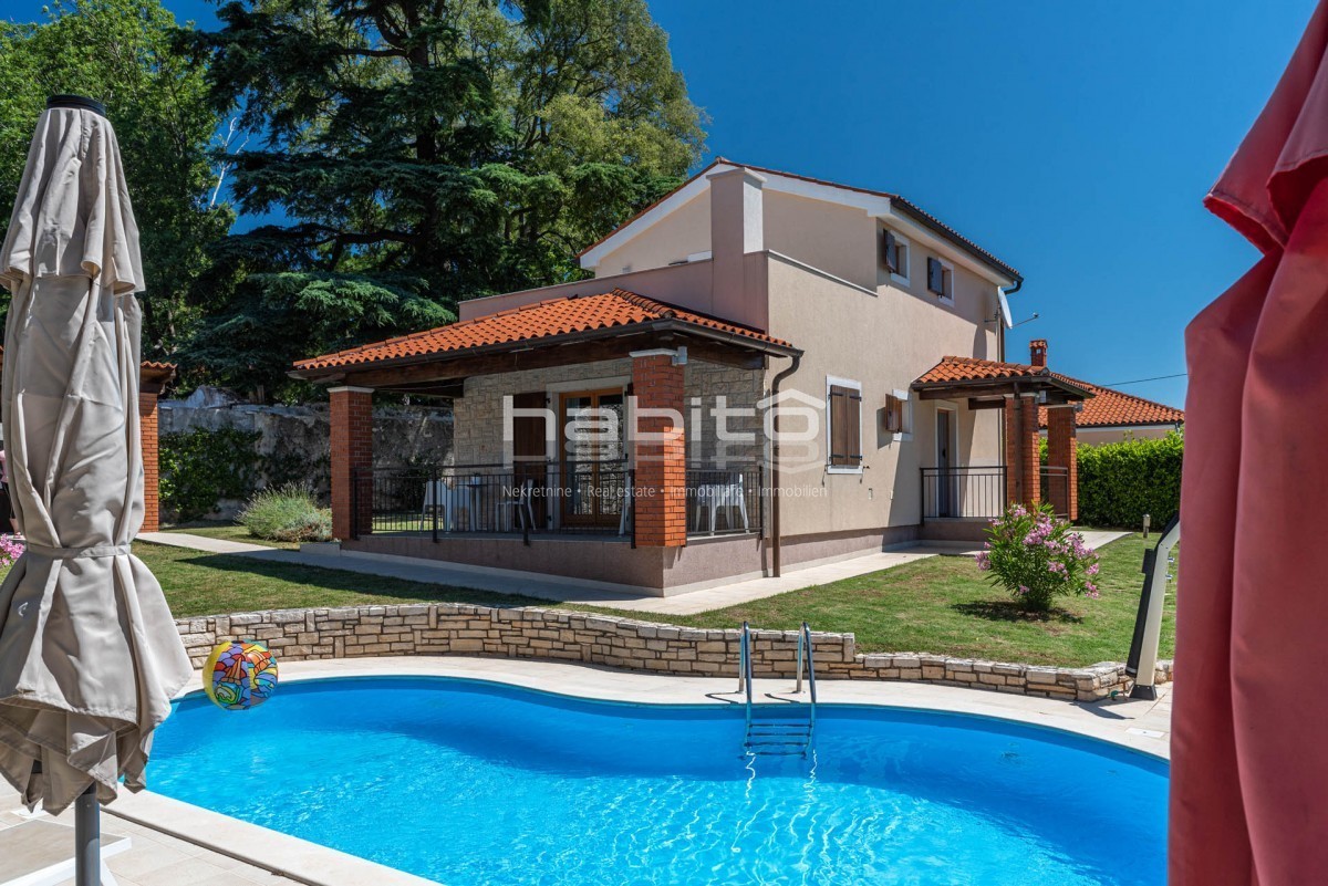 U okolici Poreča, na samo par minuta od centra manjeg naselja smještena je ova prekrasna i komforna kuća sa bazenom. Kuća je kompletno namještena i opremljena tehnikom te se kao takva i prodaje. Kuća osim bazena također nudi i natkrivena parkirna mjesta, vanjski roštilj / BBQ, ljetnju kuhinju te lijepo uređeno dvorište.