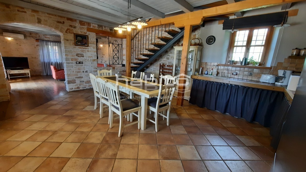 Prodaje se ova prekrasna kamena vila od 200 m2, smještena na zemljištu od 1030 m2, na mirnoj lokaciji neposredno blizu svih popratnih sadržaja a samo 13 km od mora i grada Poreča.