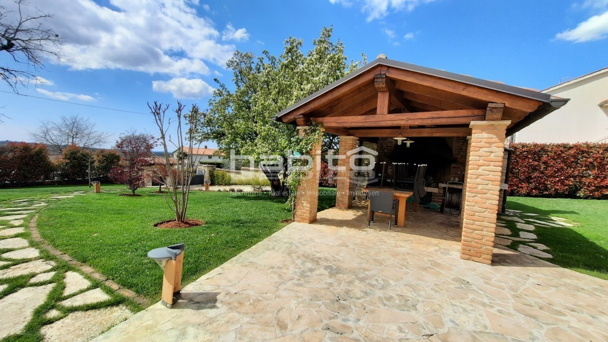 Dvorište sadrži natkriveni kamin, bazen i popločen parking za 2-3 automobila. Postavljeno je automatsko navodnjavanje travnjaka i alarmni sustav.