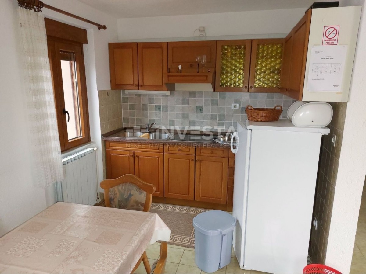 U drugoj kući, koja nije fizički spojena sa prvom, u prizemlju je smješten stan površine cca 70 m2 koji se sastoji od dnevnog boravka i blagovaonice, kuhinje, kupatila, jedne spavaće sobe te prostrane natkrivene terase.