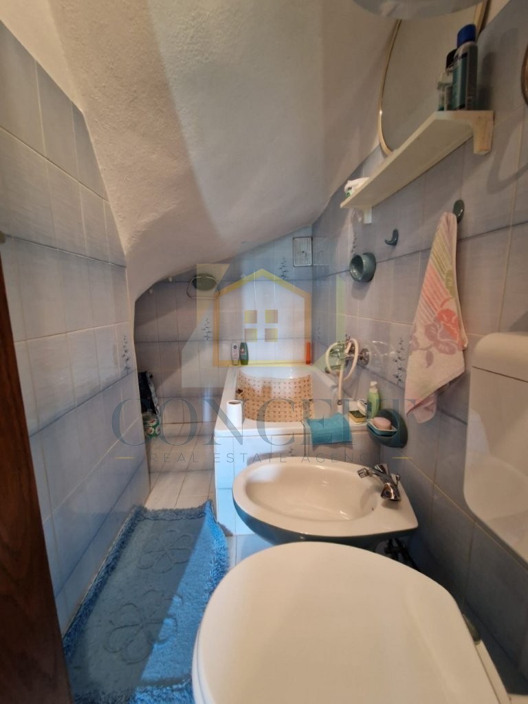 Na katu se nalazi prostrani dnevni boravak s izlazom na balkon, savršen za uživanje u jutarnjoj kavi ili večernjem odmoru. Također, na ovoj etaži nalaze se dvije udobne spavaće sobe, obje s izlazom na balkon, te dodatna kupaonica.
