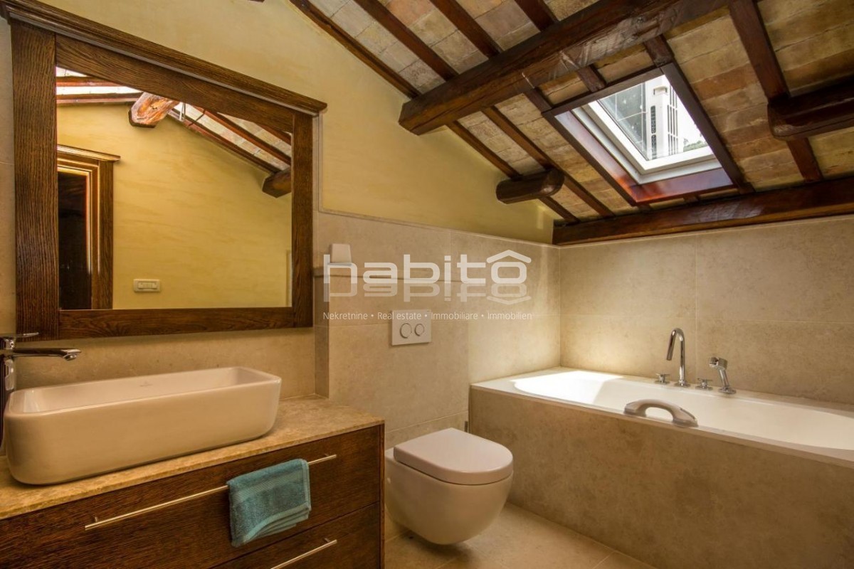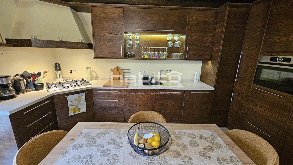 Kuća je temeljito renovirana i modernizirana, koristeći visokokvalitetne materijale i ručno izrađen namještaj, uključujući kupaonsku opremu tvrtke Villeroy & Boch i kuhinjske uređaje tvrtke Boch. Posebno se ističu predivne kamene lebdeće stepenice i masivne hrastove grede, koje dodaju dozu elegancije interijeru.