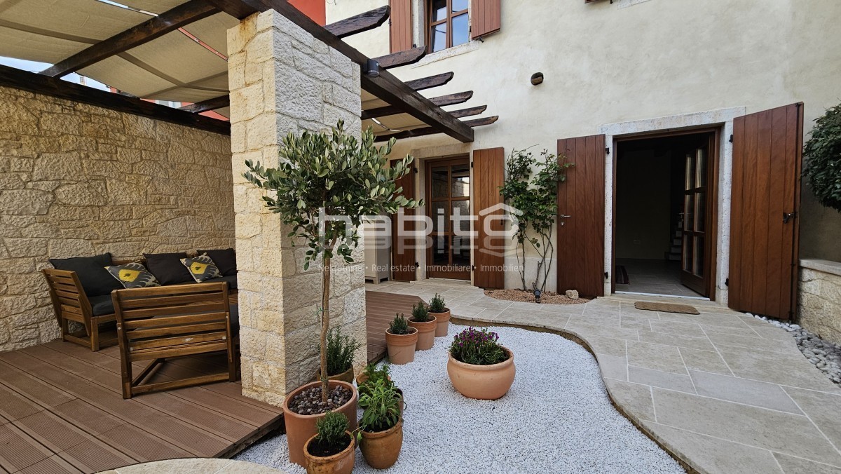 Ova jedinstvena kamena kuća smještena je u srcu sela u blizini Poreča, u Istri. S potpunom infrastrukturom i svim potrebnim sadržajima na dohvat ruke, ova nekretnina predstavlja savršen spoj tradicionalnog šarma i modernog komfora.