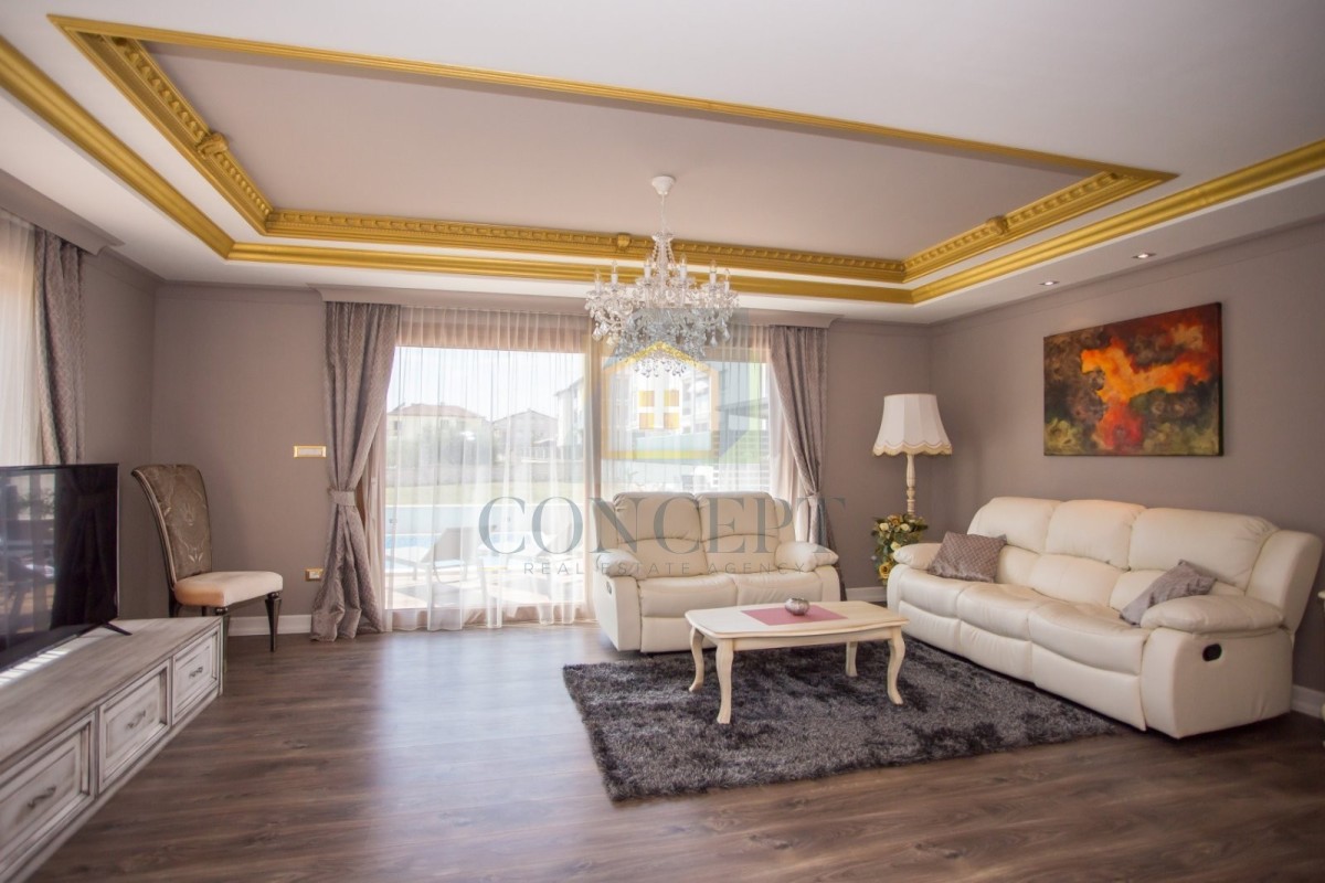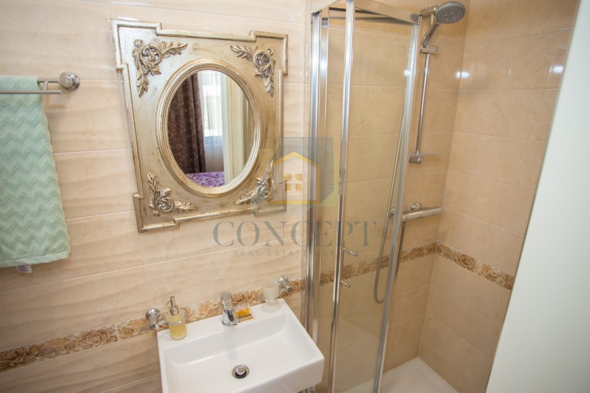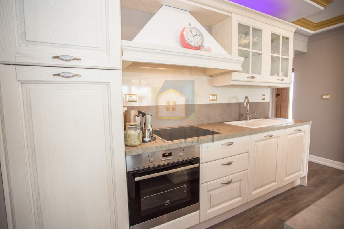 Opremljena je kvalitetnim namještajem i svim potrebnim kućanskim aparatima. Grijanje i hlađenje osigurano je putem klima uređaja.