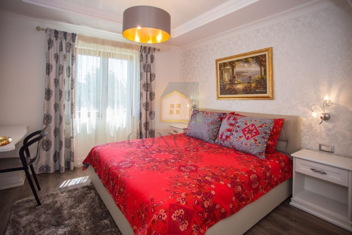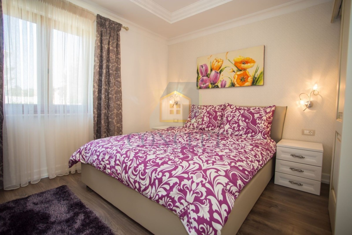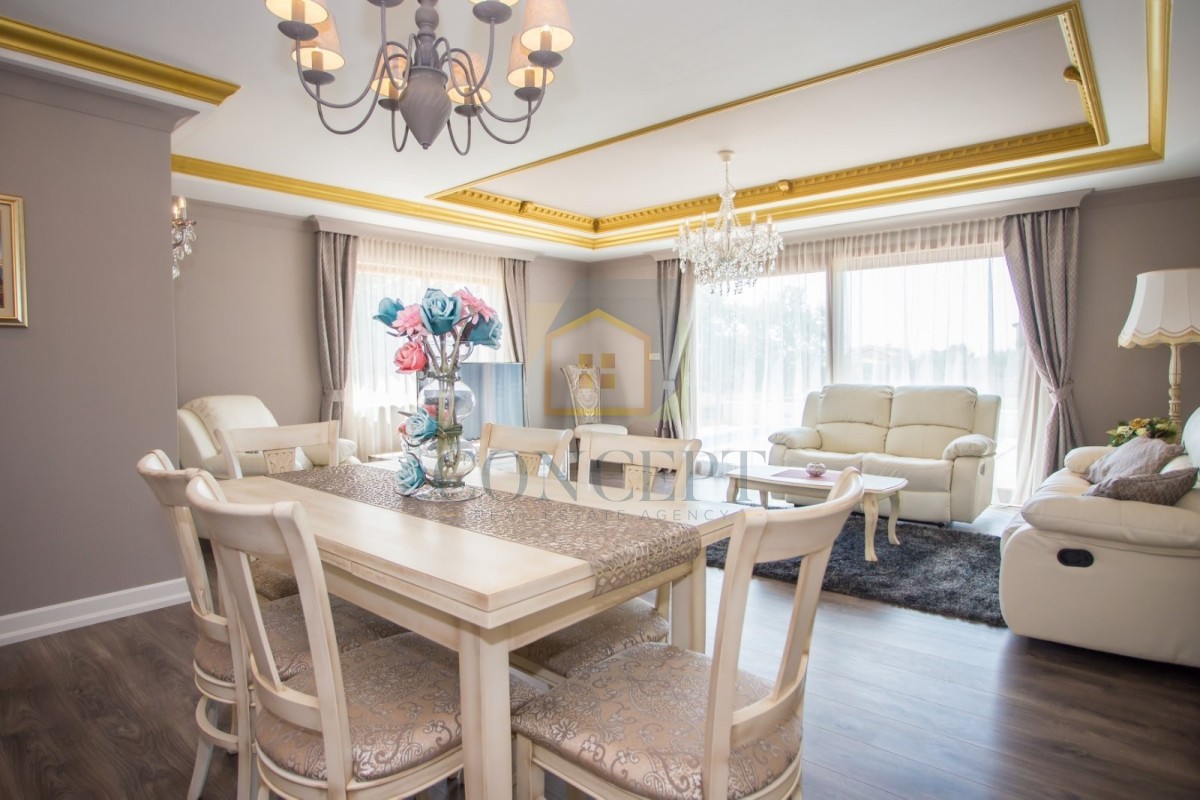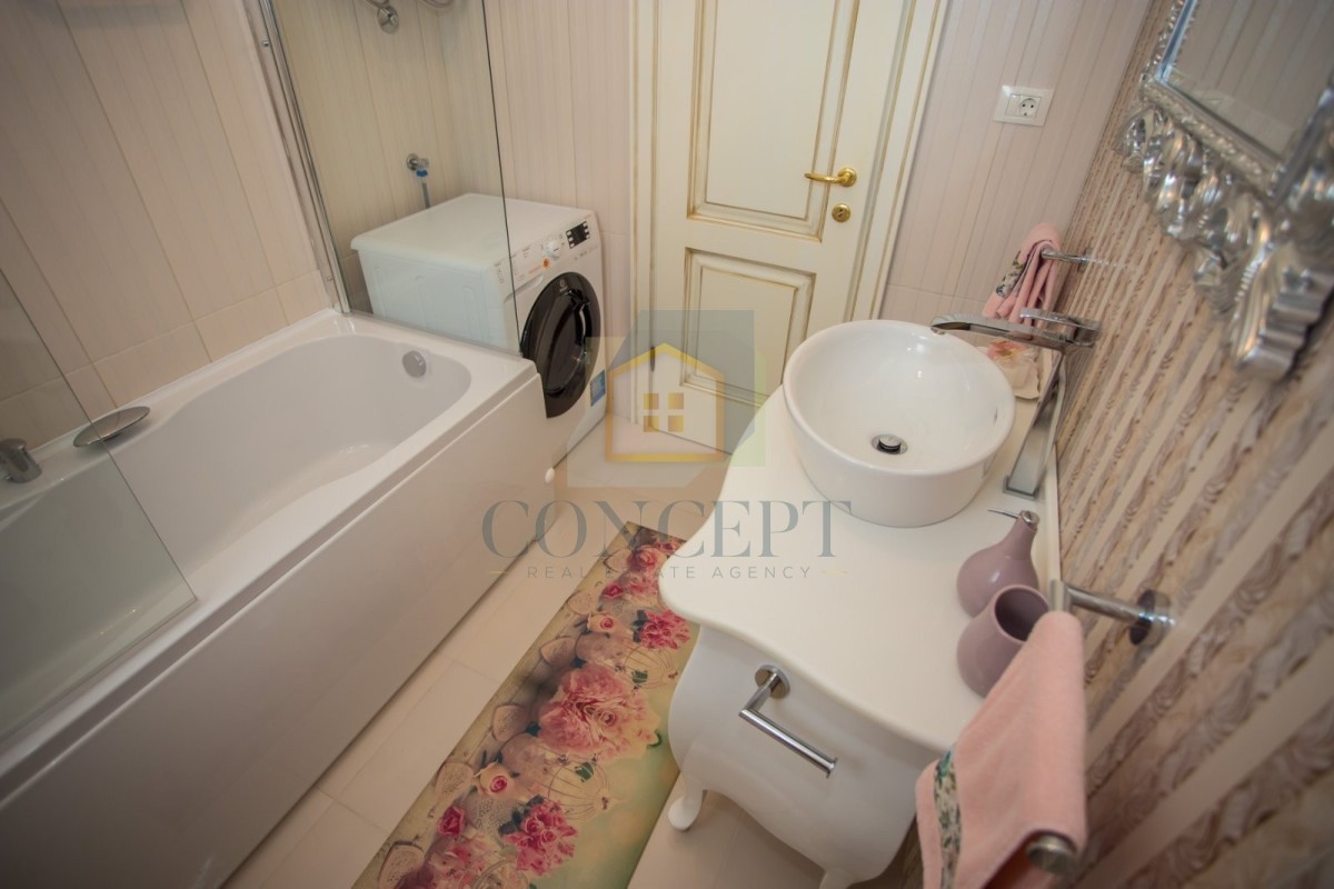 Opremljena je kvalitetnim namještajem i svim potrebnim kućanskim aparatima. Grijanje i hlađenje osigurano je putem klima uređaja.