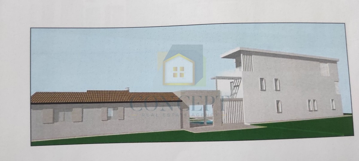 Prodaje se prizemna kuća s pripadajućim zemljištem i projektom za dodatnu gradnju u mirnoj okolici Poreča, udaljenoj 7 km od grada i mora.