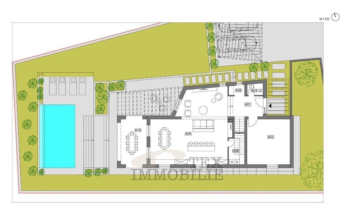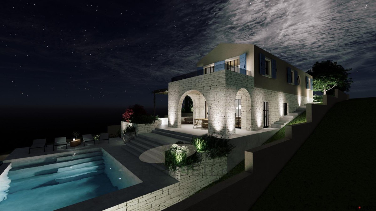 Prodaje se zemljište s građevinskom dozvolom za izgradnju vile neto površine 231 m² s bazenom.
