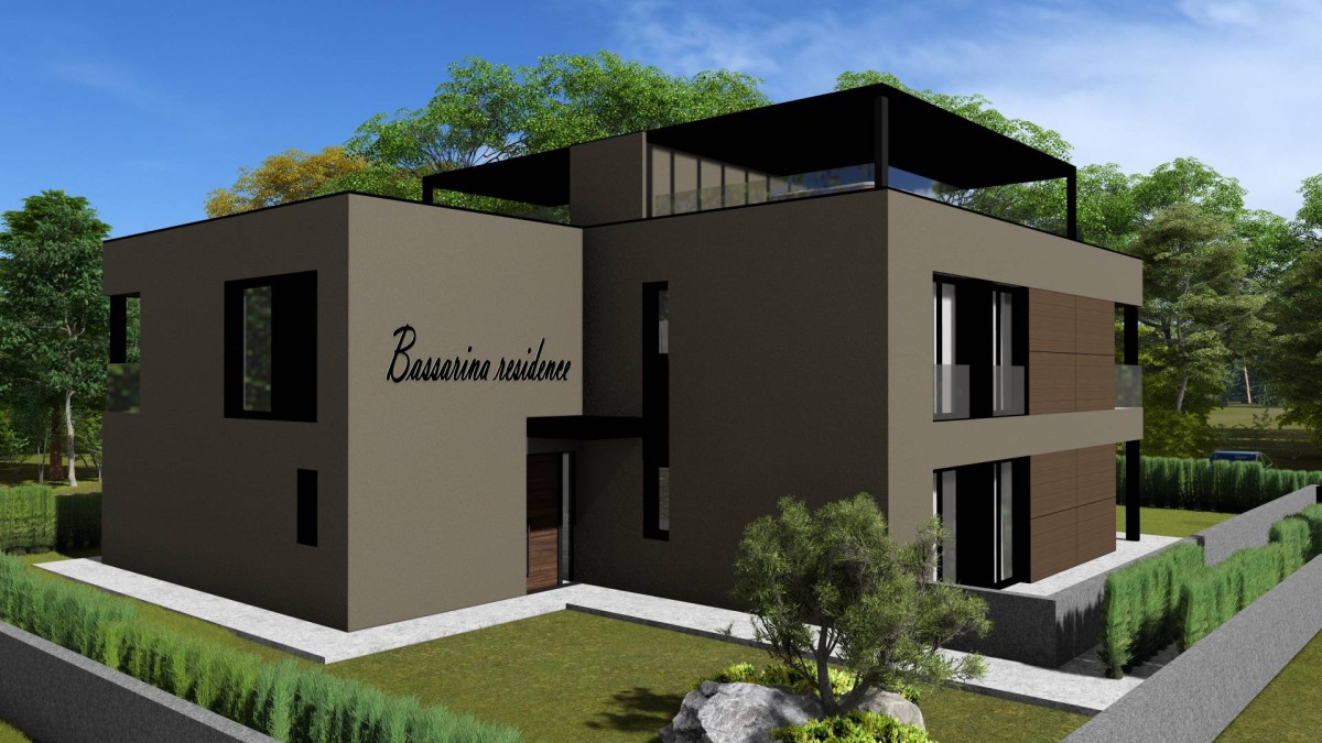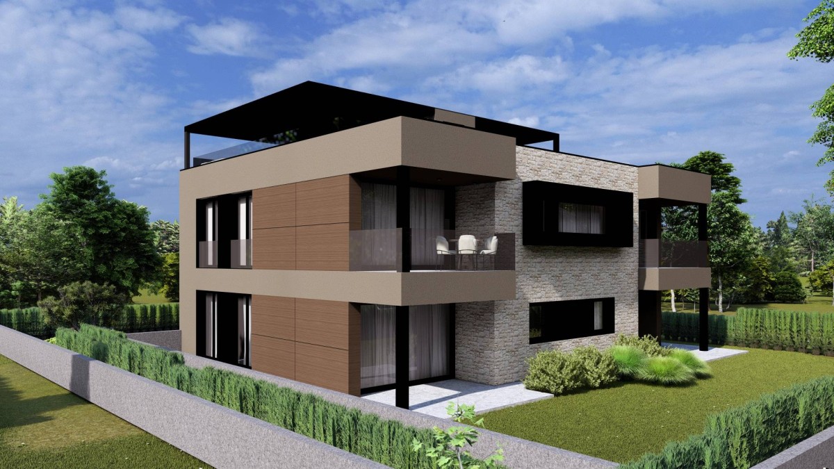 Na odličnoj lokaciji samo 2500 m od mora i lijepih plaža te 3000 m od centra Poreča gradi se zgrada sa 5 stanova.