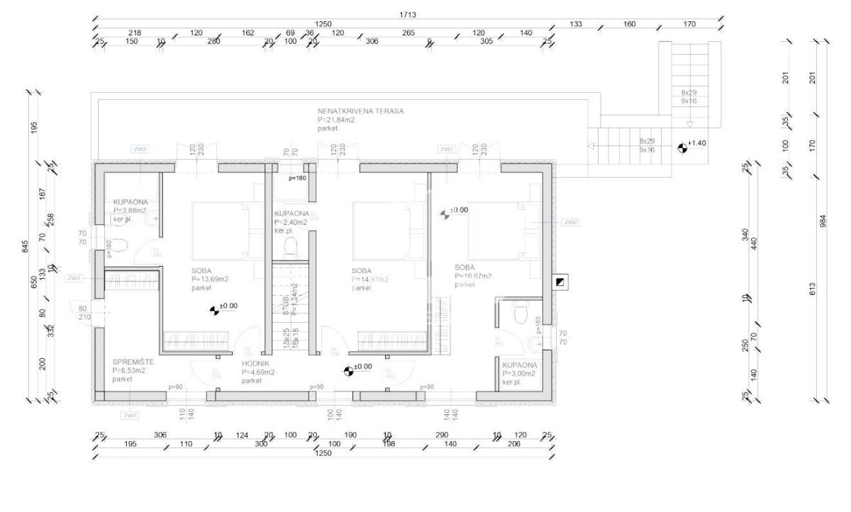 Kuća raspolaže s 2 parkirna mjesta. Planirani rok završetka je proljeće 2024. god.