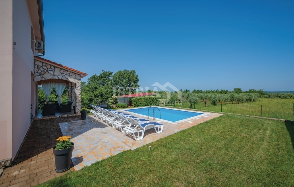 Na prodaju predivna kuća ukupne površine 193 m2 smještena na zemljištu površine 717 m2 sa bazenom udaljena samo 4,5 km od mora i 6 km od centra Poreča.