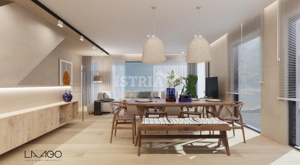 U visokom potkrovlju nalazi se hodnik, master spavaća soba sa vlastitom kupaonicom i garderobom, spremište te prostrana krovna terasa sa predivnim pogledom na more.