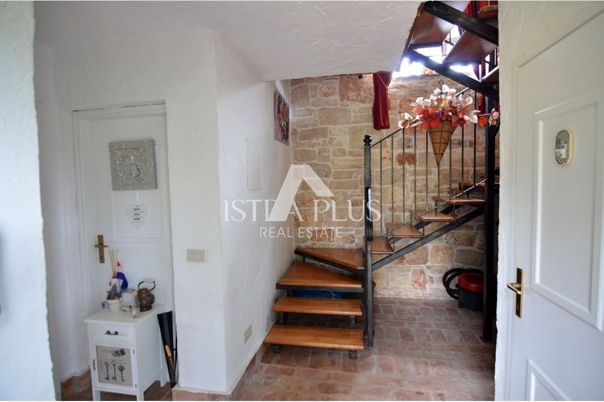 Prodaje se predivna dvojna kamena kuća u Tar- Vabrigi koja se sastoji od prizemlja i kata. U prizemlju je predsoblje, kupaonica sa tušem, ostava, kuhinja sa blagovaonicom te dnevni boravak sa kaminom i izlazom na veliku natkrivenu terasu na kojoj su postavljene klupe i stol za okupljanje obitelji ili ugodno druženje sa prijateljima.