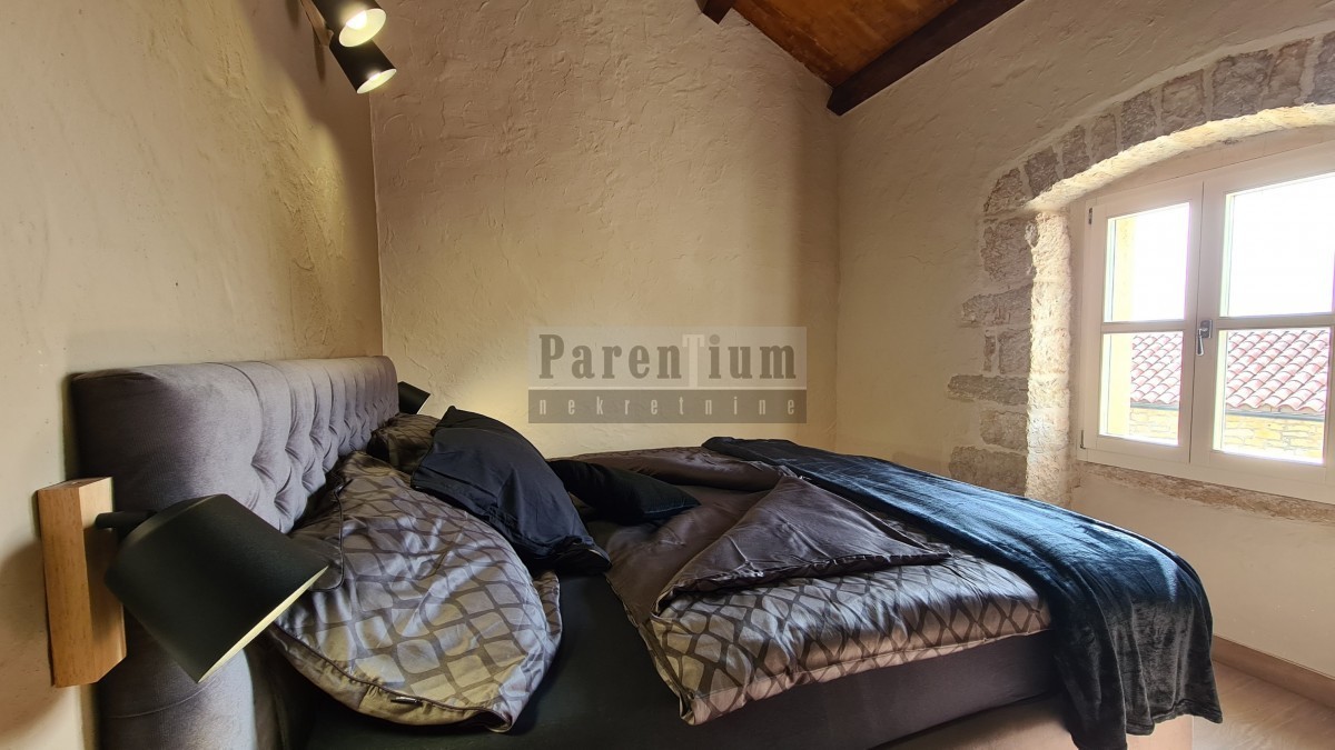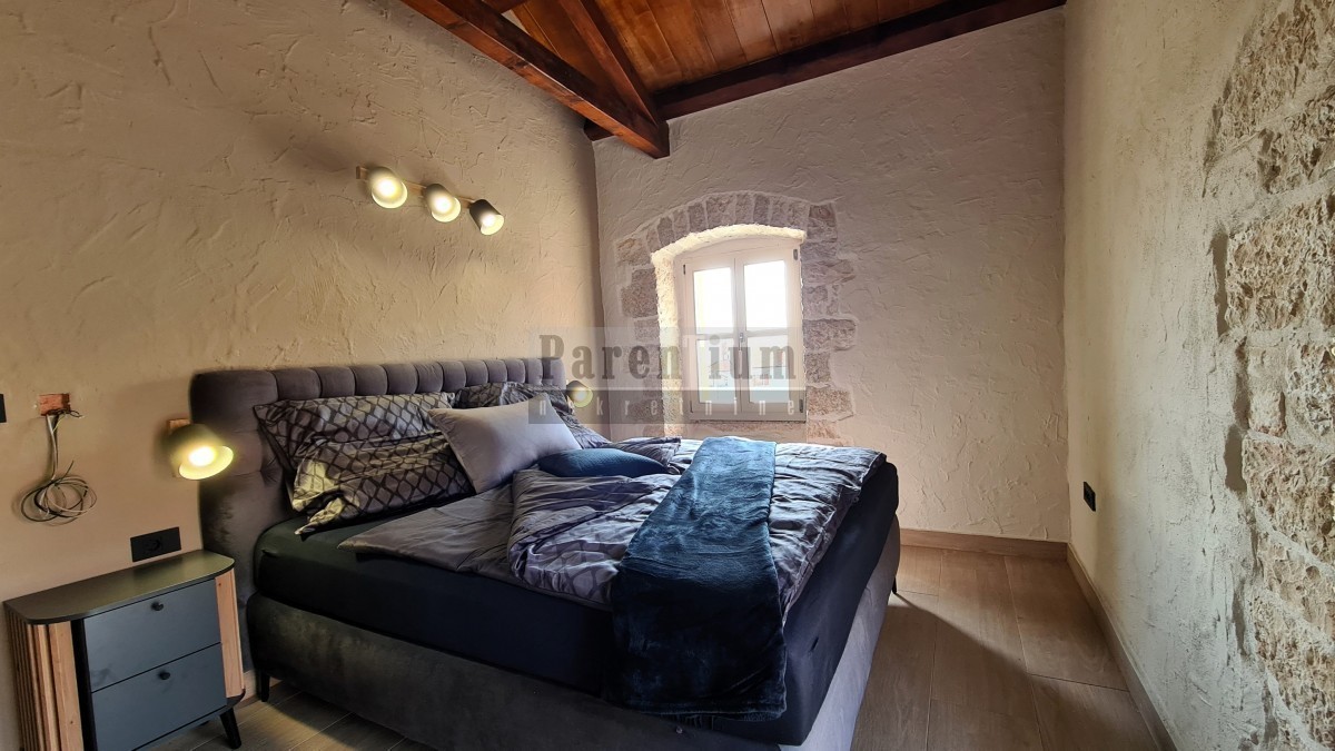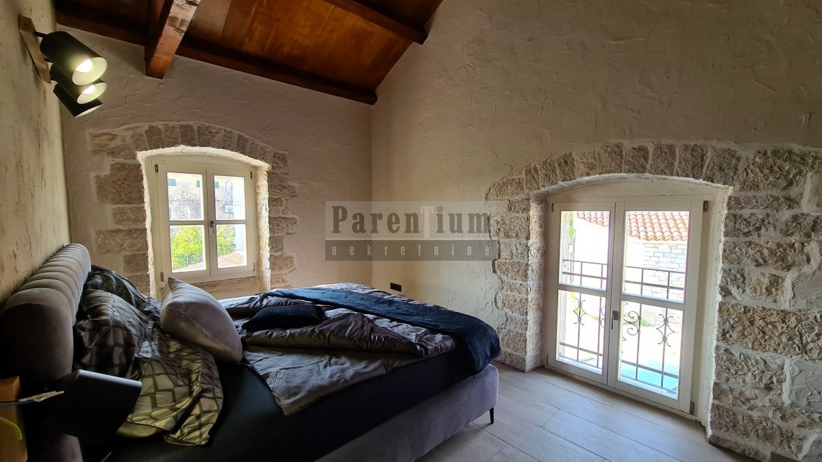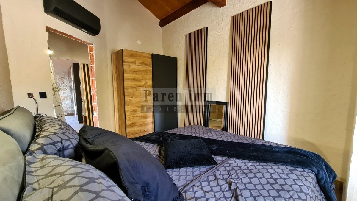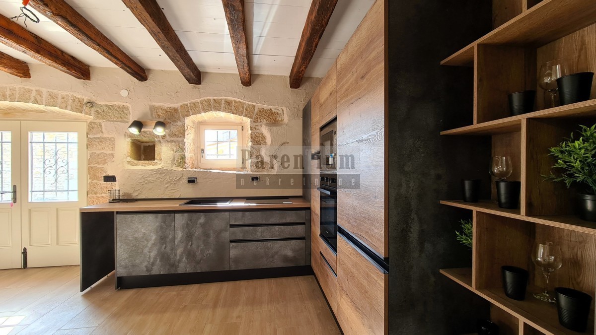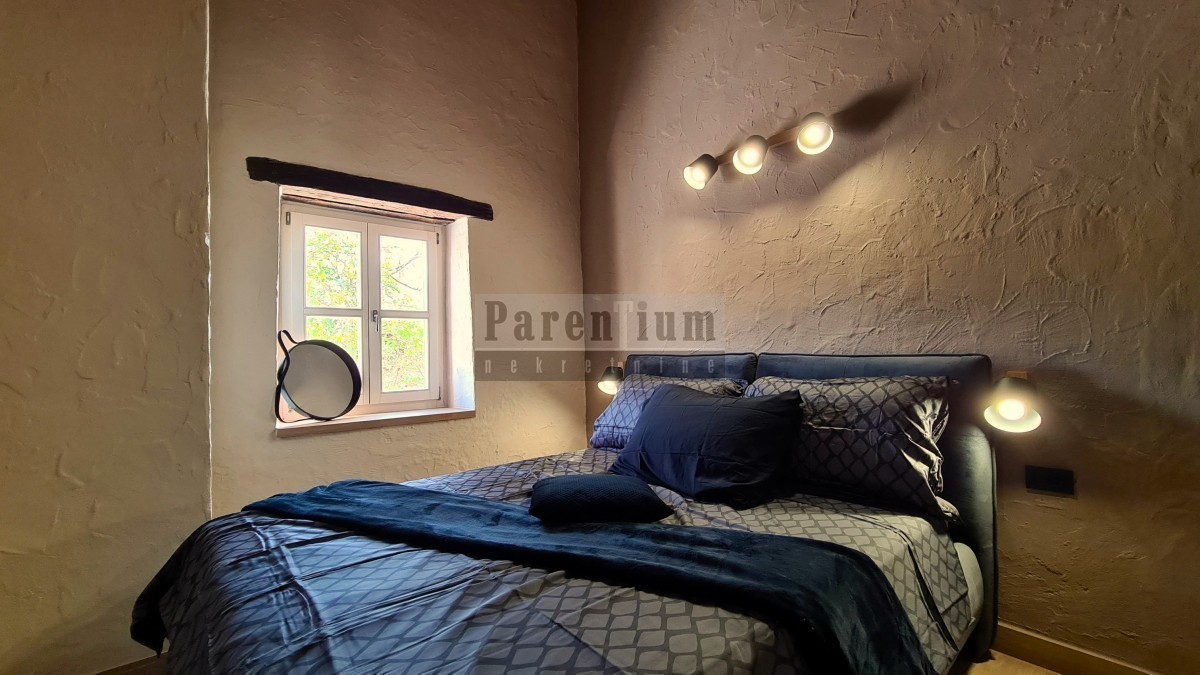 Kuća se prodaje kompletno renovirana i djelomično namještena u kombinaciji tradicionalne istarske kamene kuće u spoju sa modernom funkcionalnošću. U kući je postavljeno podno grijanje te 4 klima uređaja - u svakoj spavaćoj sobi te u dnevnom boravku.