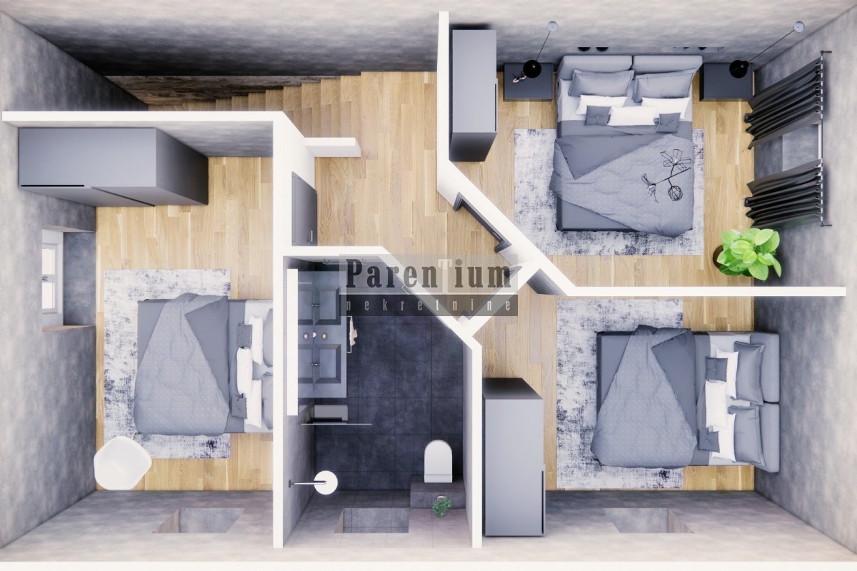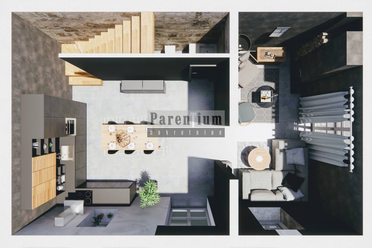 Prizemlje kuće sastoji se od predivnog dnevnog boravka sa kaminom te izlazom na terasu i uređeno dvorište, kuhinje sa blagovaonom te toaleta, dok se kat kuće sastoji od tri spavaće sobe, svaka sa klima uređajem te centralnim kupatilom.