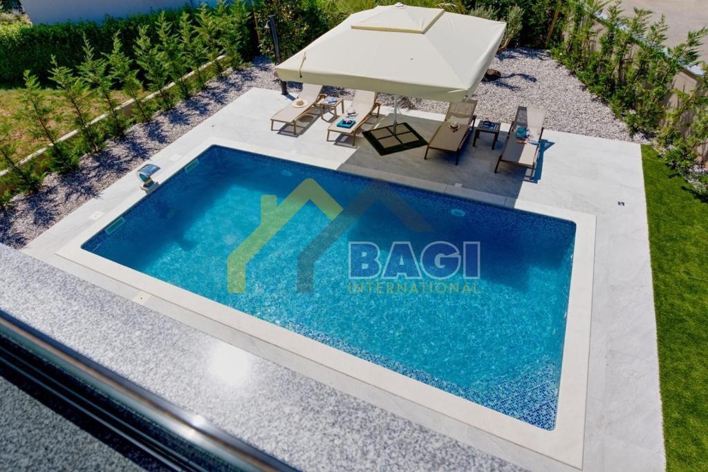 natkrivenom terasom i vanjskom kuhinjom i roštiljem,prelijepo uređenim vrtom,bazenom,