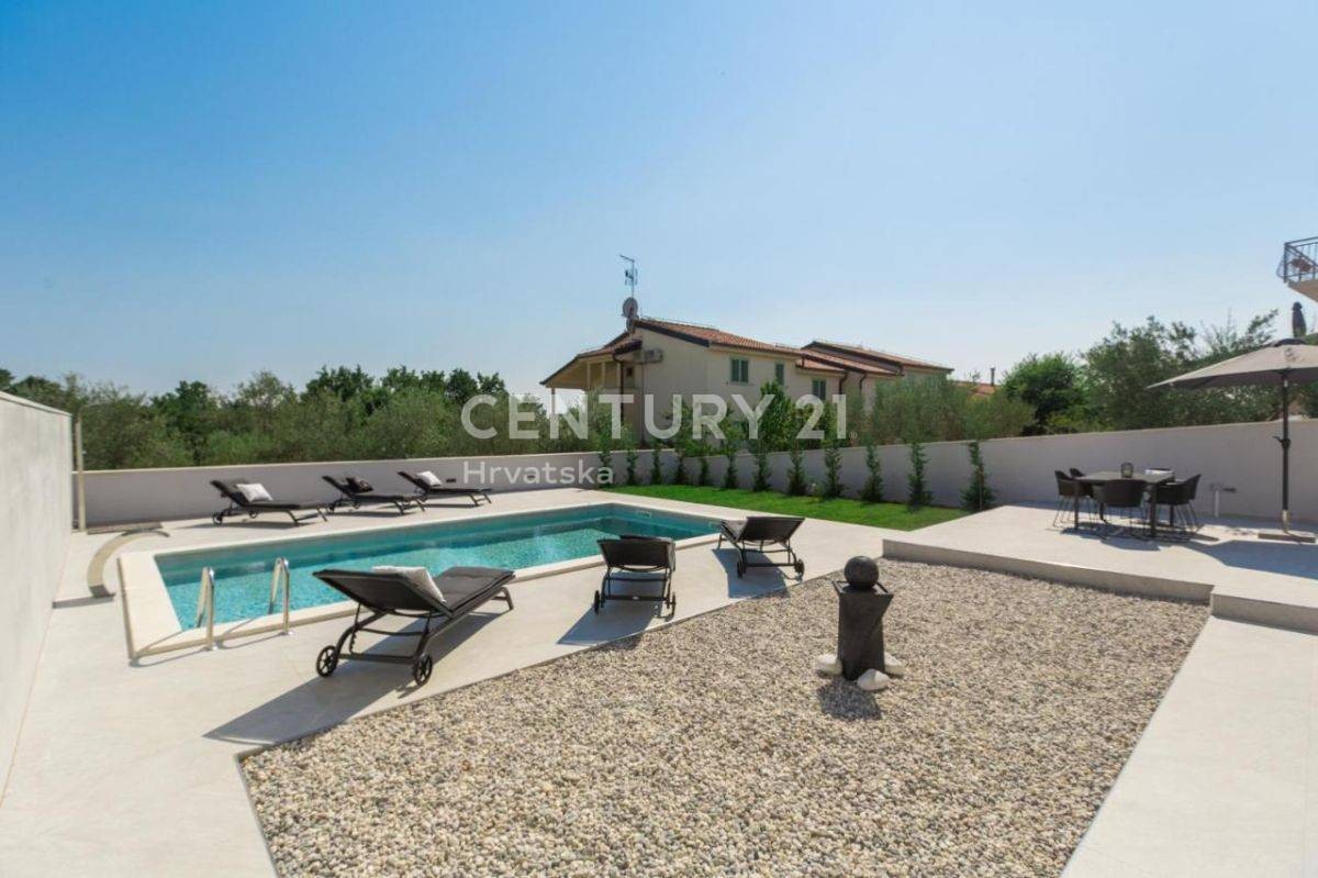 Ova lijepa moderna dvojna kuća nalazi se 7km od Poreča i mora, u mirnom naselju, s pogledom na prirodu i šume.