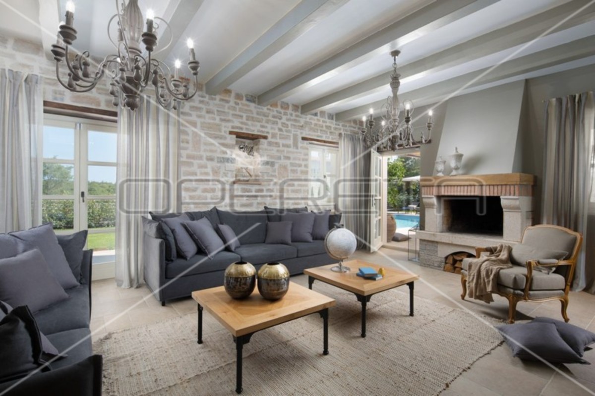 Kvalitetna i elegantna završna izvedba s izvrsnim izborom boja i materijala interijera. Vila je raskošno opremljena i namještena rustikalnim namještajem nudeći vrlo visoku razinu komfora.
