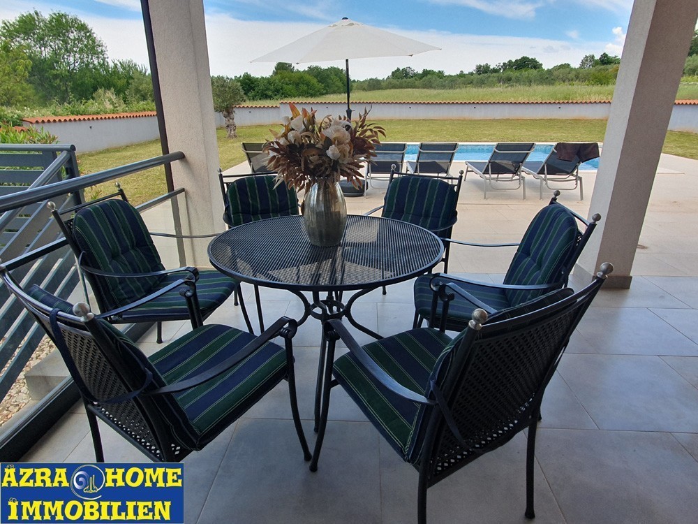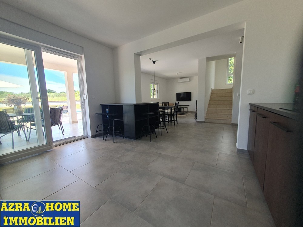 U okolici Vodnjana , na udaljenosti od 5km, na kraju sela , uz prekrasnu prirodu, nalazi se ova samostojeća novija kuća bruto površine 180 m2 ( 131 m2 + 49 m2 terase ) .