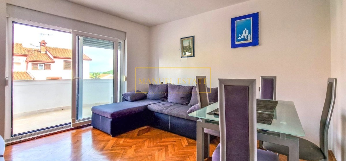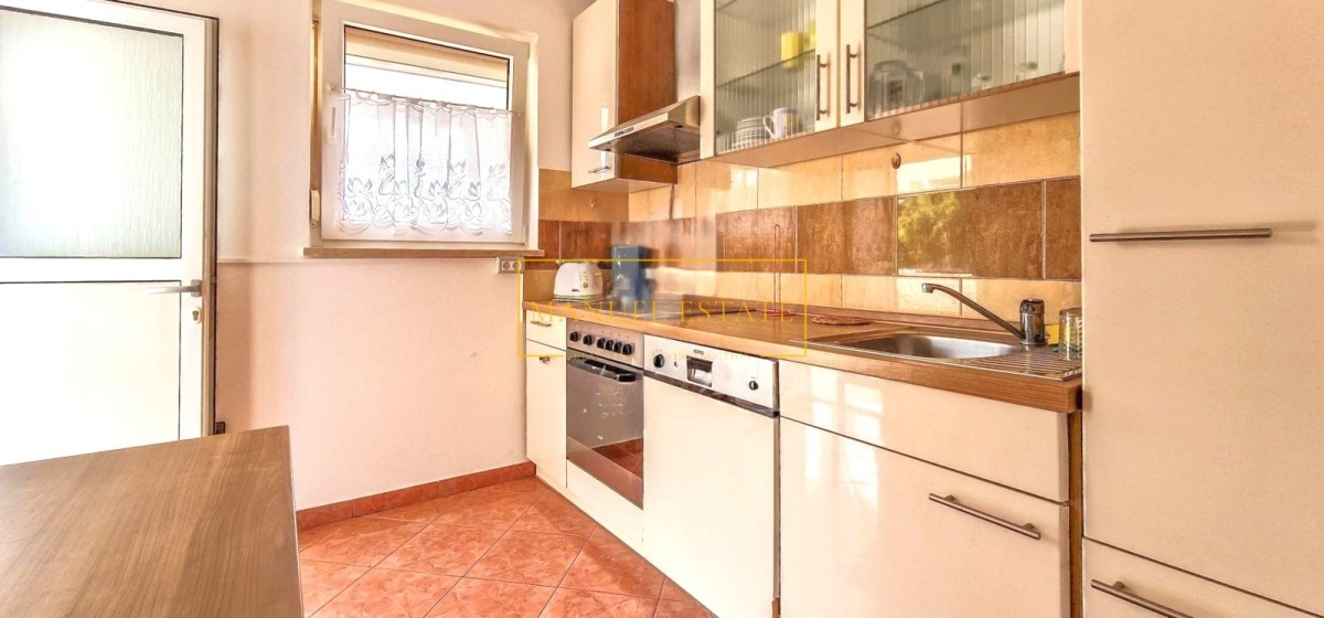 Stan se nalazi na prvom katu stambene zgrade izgrađene 2000. godine. Raspored prostorija je funkcionalan i udoban, a stan se sastoji od dvije spavaće sobe, kupaonice s prozorom, dodatnog WC-a, kuhinje s blagovaonicom, hodnika i dnevnog boravka s izlazom na balkon s djelomičnim pogledom na more. Stan se prodaje u potpunosti namješten, što omogućuje brzo i jednostavno useljenje bez dodatnih ulaganja.