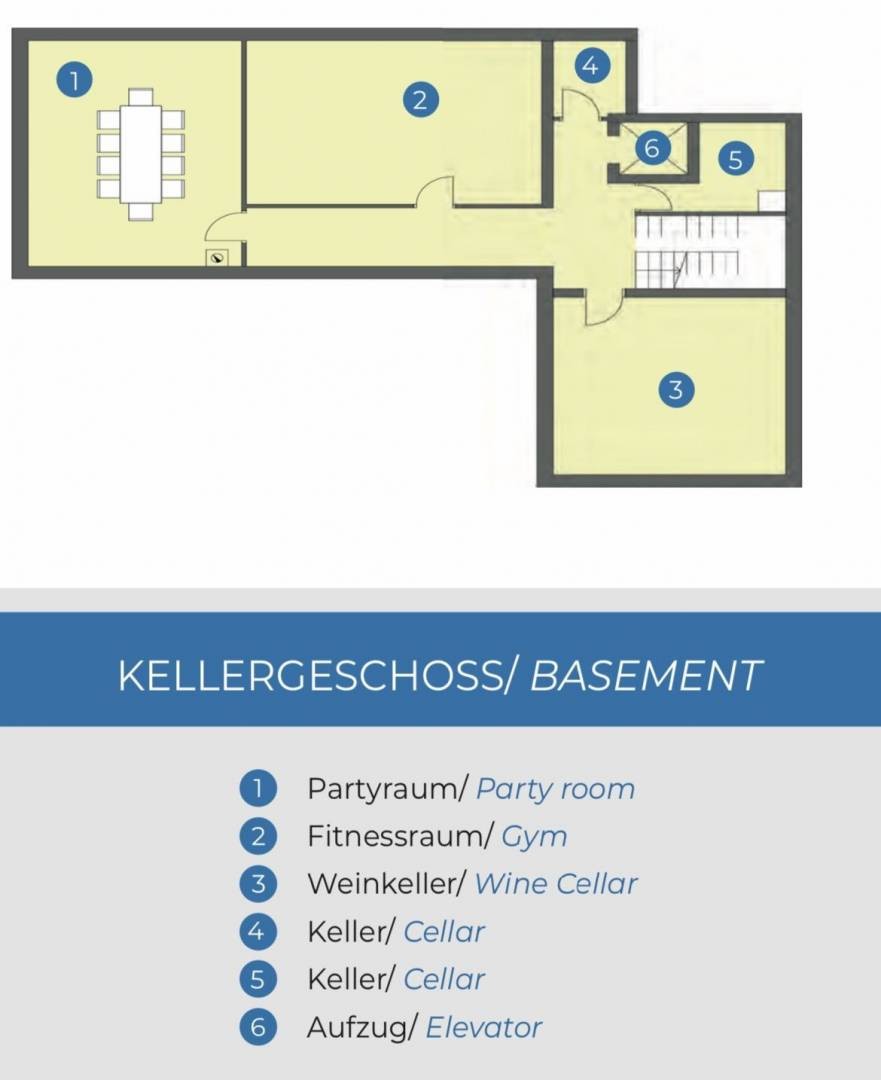 Projekt se sastoji od suterena u kojem su smješteni soba za druženje/blagavaona, vinski podrum, fitnes, sauna, spremište i lift.