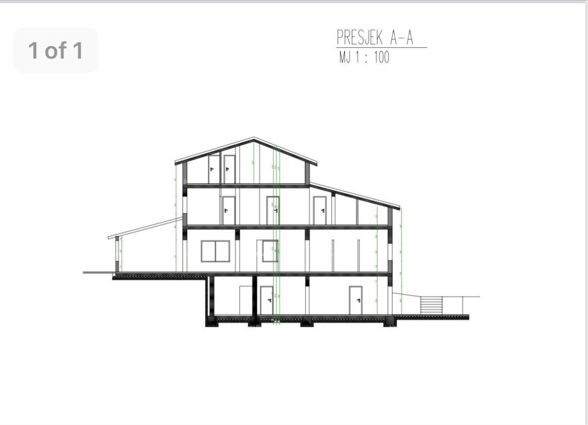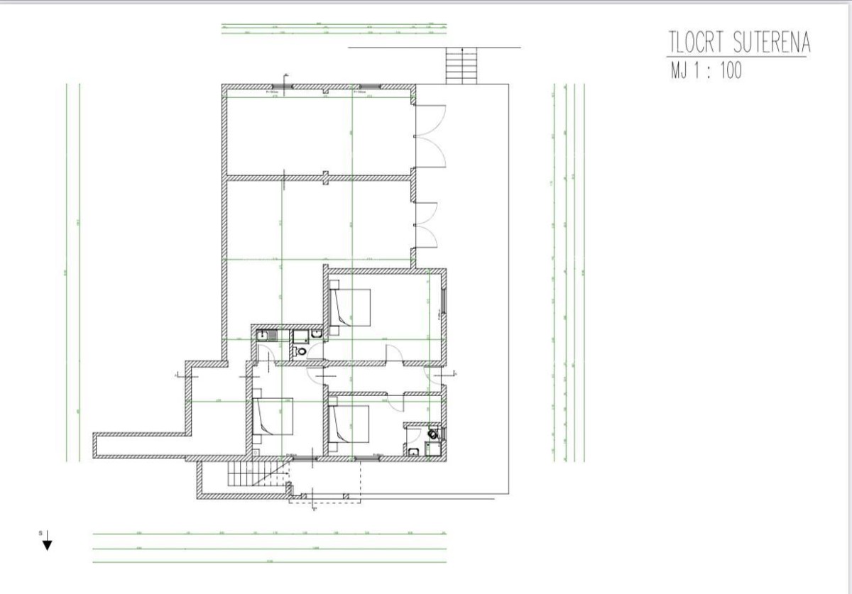 Zgrada se sastoji od 4 etaže: suteren, prizemlje, prvi kat i potkrovlje. Suteren uključuje 3 spavaće sobe, 2 kupaone, vešeraj,dvije garaz