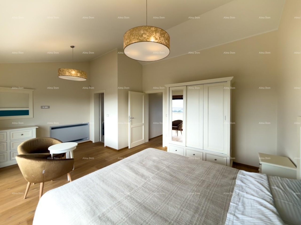 Na katu kuće nalazi se master spavaća soba sa vlastitim kupatilom i terasom sa koje se pruža pogled na more i Brijune.