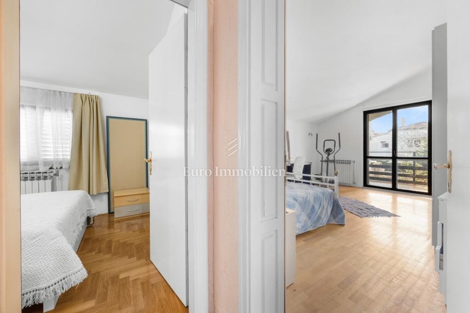 Nekretnina se sastoji od tri odvojene stambene jedinice: glavnog dvoetažnog stana od 156 m² s prostranim dnevnim boravkom, kuhinjom i blagovaonicom, kaminom, tri spavaće sobe, kupaonicom i terasom; dvoetažnog apartmana od 86 m² s dvije spavaće sobe, terasom i krovnom terasom s pogledom na more; te prizemnog stana od oko 70 m² s izlazom na popločenu terasu i ljetnu kuhinju.