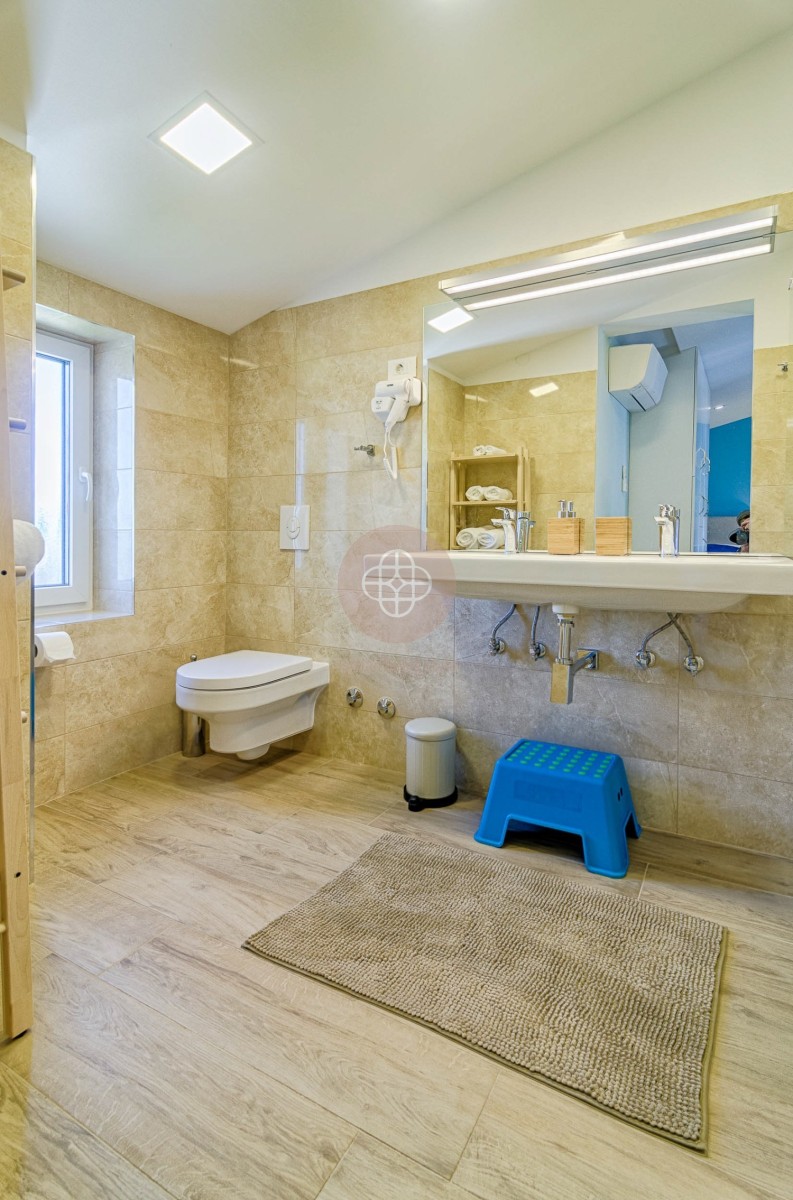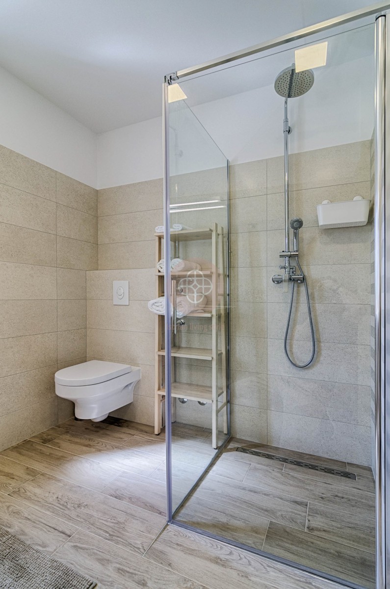 Nedaleko od plaže nalazi se prostrana kuća za odmor koja pruža udoban utočište onima koji traže miran bijeg. Ova dvokatnica ima četiri spavaće sobe, ugodan dnevni boravak, dobro opremljenu kuhinju i praktično podrumsko prostranstvo. Svaka spavaća soba opremljena je vlastitom kupaonicom kako bi se osigurala privatnost i udobnost svim stanarima. Osim toga, podrum sadrži saunu koja dodaje luksuzni dodir sadržajima kuće.