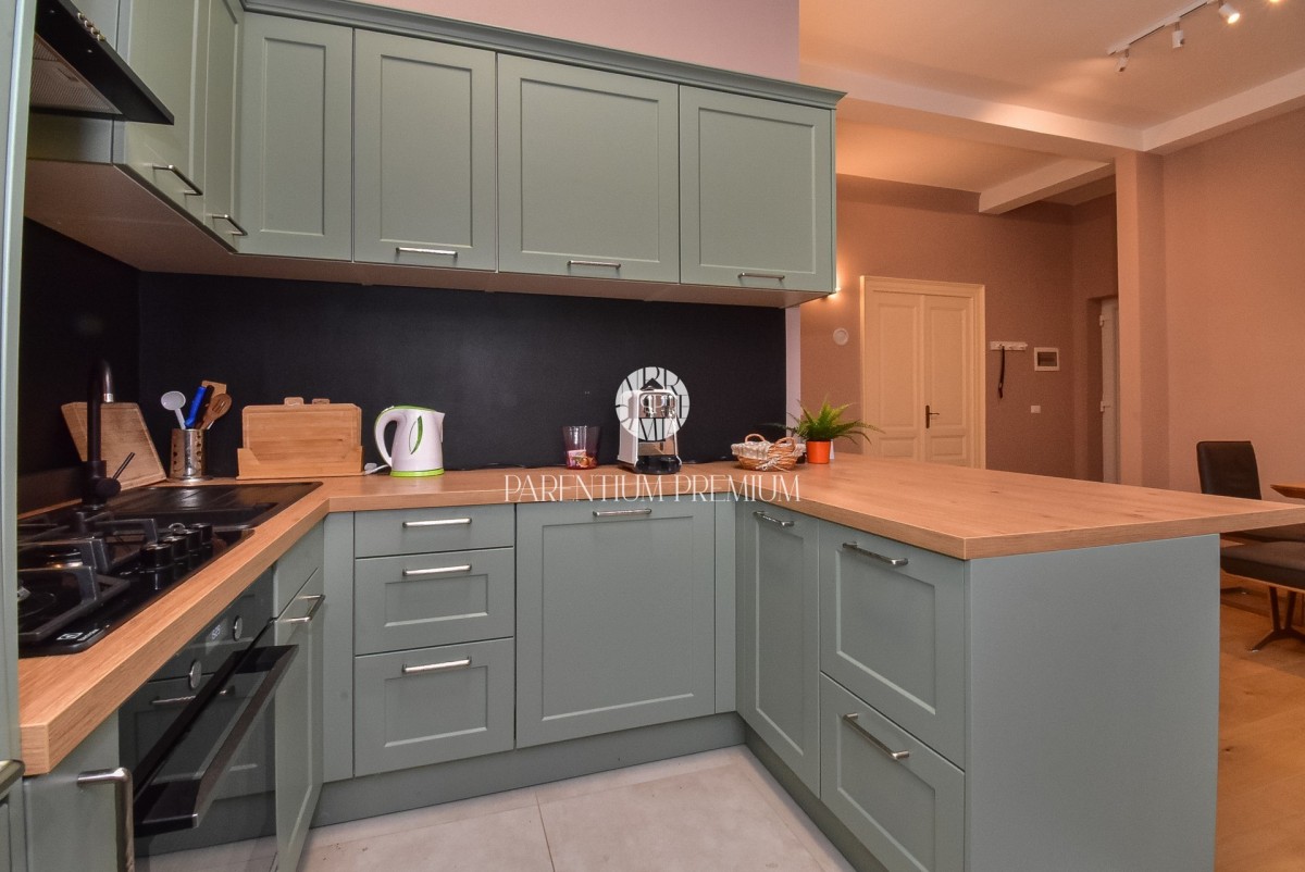 Prodaje se prostran stan površine 65 m², s pripadajućom ostavom u suterenu veličine 20 m². Stan je potpuno renoviran te se ističe visokim stropovima i velikim, prozračnim i svijetlim prozorima, što prostoru daje dodatnu udobnost i osjećaj prostranosti. Nalazi se nedaleko centra grada i svih sadržaja potrebnih za ugodan život.