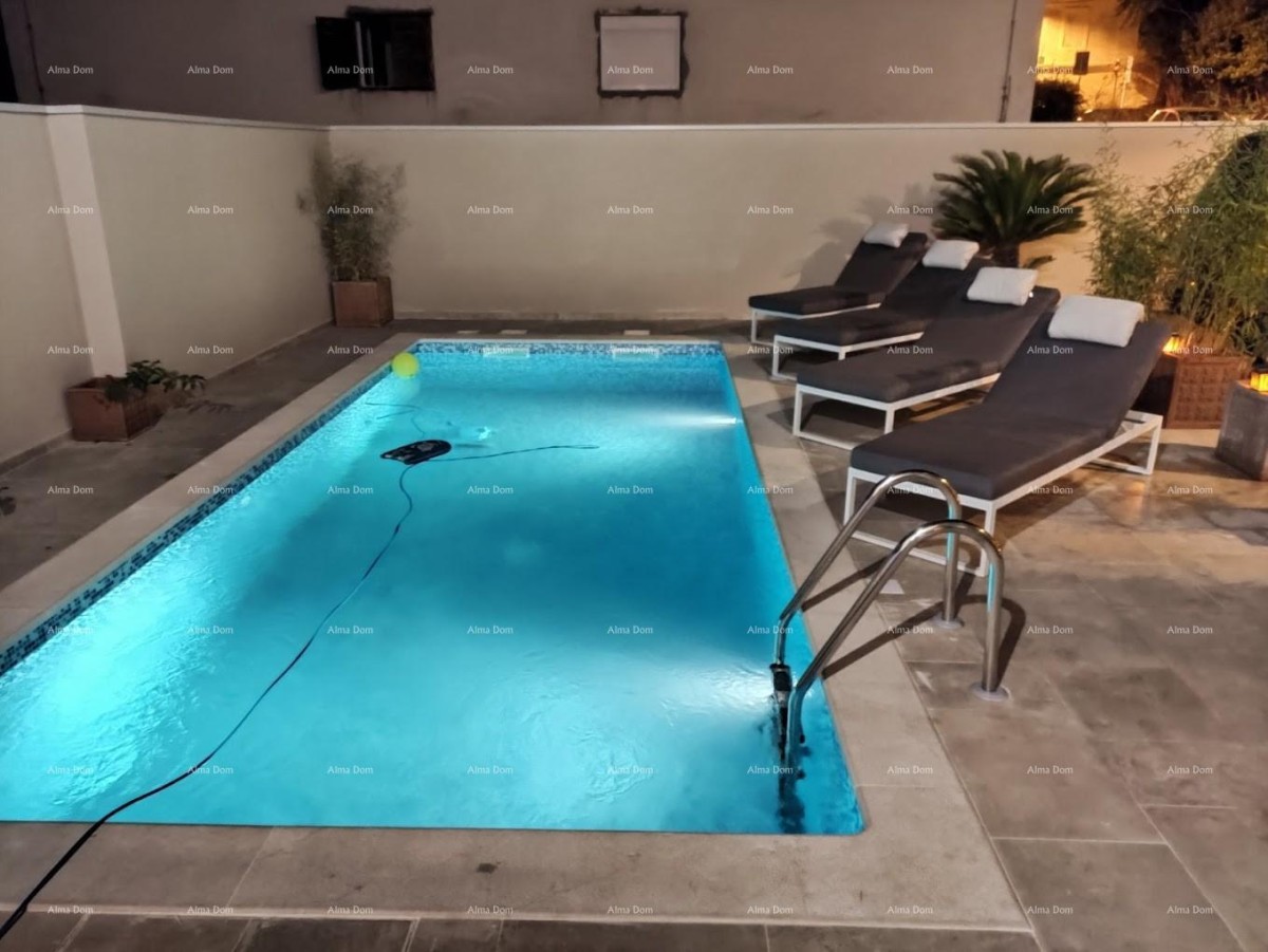 Vila također ima bazen s grijanjem, automatskim solnim kloriranjem i protustrujnim tijekom plivanja, idealan za opuštanje. Cijela kuća opremljena je Mitsubishi klimom i podnim grijanjem za maksimalnu udobnost. Na posjedu se nalazi zatvoreni parking za 3 automobila.