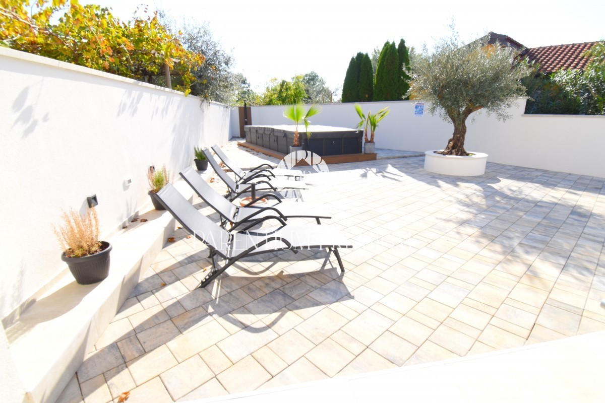 Dvorište je potpuno ograđeno zidom i visokom električnom kapijom koje pruža potpunu privatnost, te raspolaže s dva parkirna mjesta.