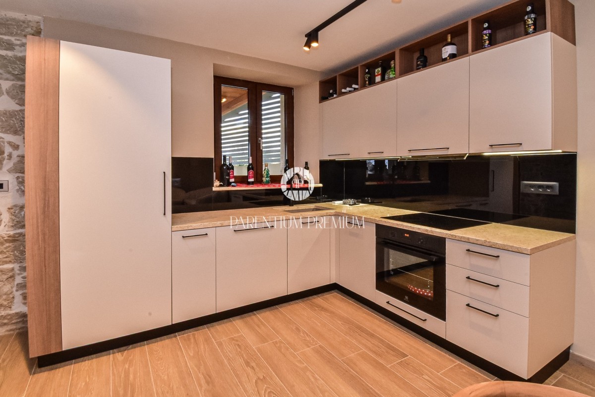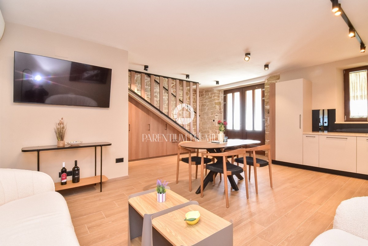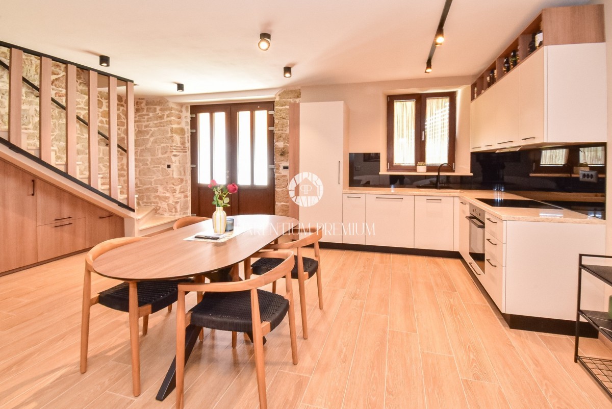 Kuća je u potpunosti renovirana korištenjem visokokvalitetnih materijala, pri čemu se posebno pazilo na očuvanje autentičnog istarskog rustikalnog duha, vješto spojenog s modernim dizajnom i suvremenim komforom.