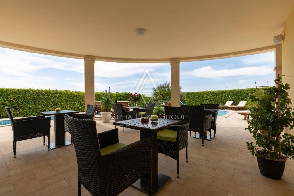 Gosti mogu uživati u kulinarskim delicijama u prostranom blagovaonskom prostoru koji se otvara na natkrivenu terasu s predivnim pogledom na vrt. Središnji dio vrta je veličanstveni bazen od 80 m², idealno mjesto za opuštanje pod istarskim suncem. Hotel nudi prostran prostor za skladištenje u podrumu, osiguravajući glatko poslovanje i zadovoljstvo gostiju. Smještaj za parkiranje 12 vozila, uključujući 7 natkrivenih mjesta, osigurava lakoću i sigurnost za goste.