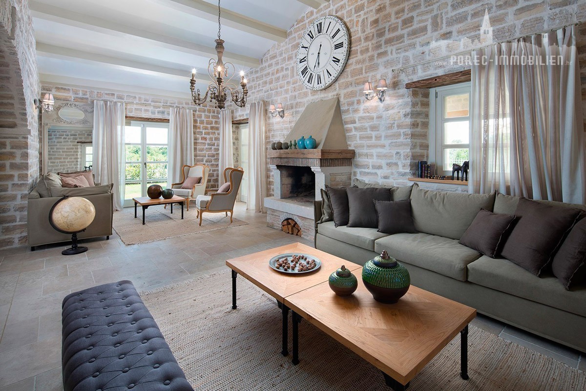 U prizemlju se nalaze prostrani dnevni boravak s kaminom, blagovaonica, potpuno opremljena rustikalna kuhinja, spavaća soba s bračnim krevetom i kupaonicom.