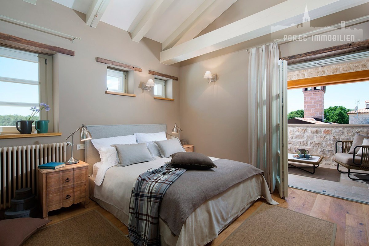 Dvije sobe imaju izlaz na terase s prekrasnim pogledom na zelenilo i zalazak sunca prema Rovinju.