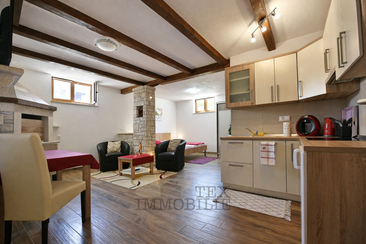 U suterenu se nalazi kotlovnica, spremište te odvojena taverna s kaminom koja je preuređena u studio apartman.