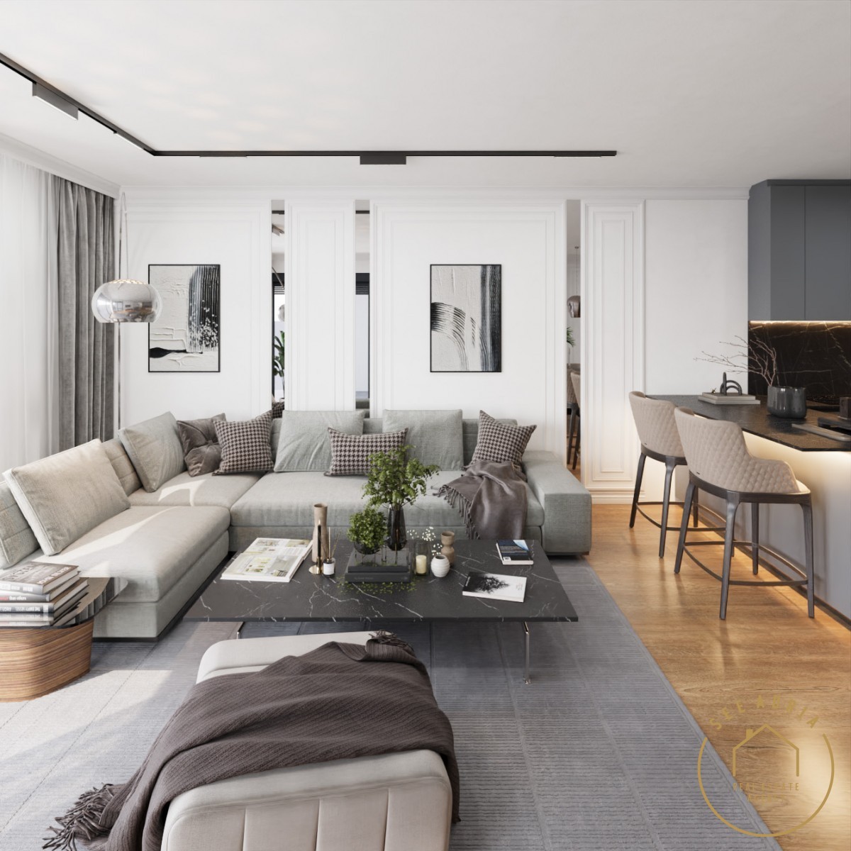 2 spavaće sobe, kupaonice i natkrivene terase. Stanu pripada spremište i parkirno mjesto.