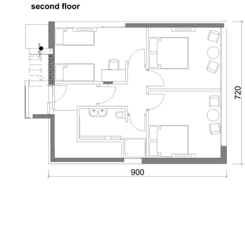 Planirana vila sa ca. 200 m2 površine. Stambena površina raspodjeljena je na tri etaže; suteren, prizemlje i kat.