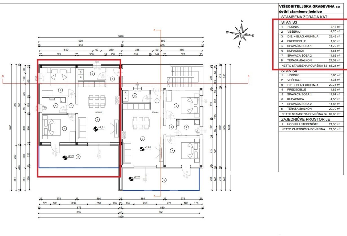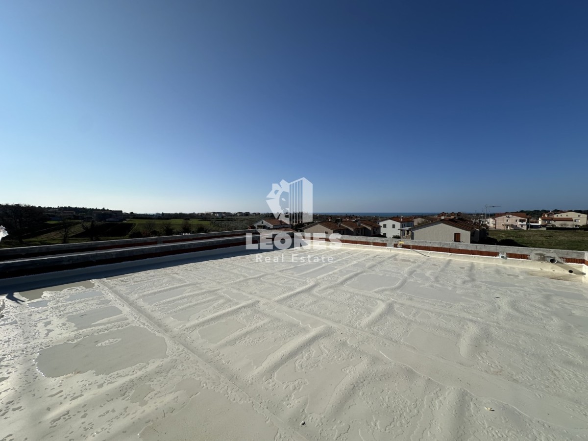 Ovaj komforan stan nudi sve što vam treba - dvije spavaće sobe, vešeraj , kupatilo, dnevni boravak s kuhinjom i blagovaonicom s izlazom na veliku natkrivenu terasu/balkon te krovnu terasu od čak 69m2 s koje se pruža predivan pogled na more.