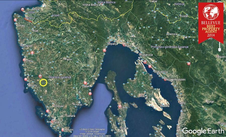 U ponudi je veliko poljoprivredno zemljište u ekološki čistoj okolinii na zapadnoj strani Istre. Prema klasifikaciji zemljište je visokokvalitetno, ravno i očiščeno od kamena . U jednom dijelu lokacije je šuma. Posebno je značajno da ima vlastiti prilazni put, gradsku vodu na zemljištu i struju u blizini. Udaljeno je od grada Rovinja 12 km ( 8 min. vožnje ) a od mora (od Parka prirode Limski zaljev ) udaljeno je 3 km gdje vlasnik može držati svoj brod. Lokacija je blizu glavne ceste za Rovinj i glavnog križanja modernih cesta prema Evropi .