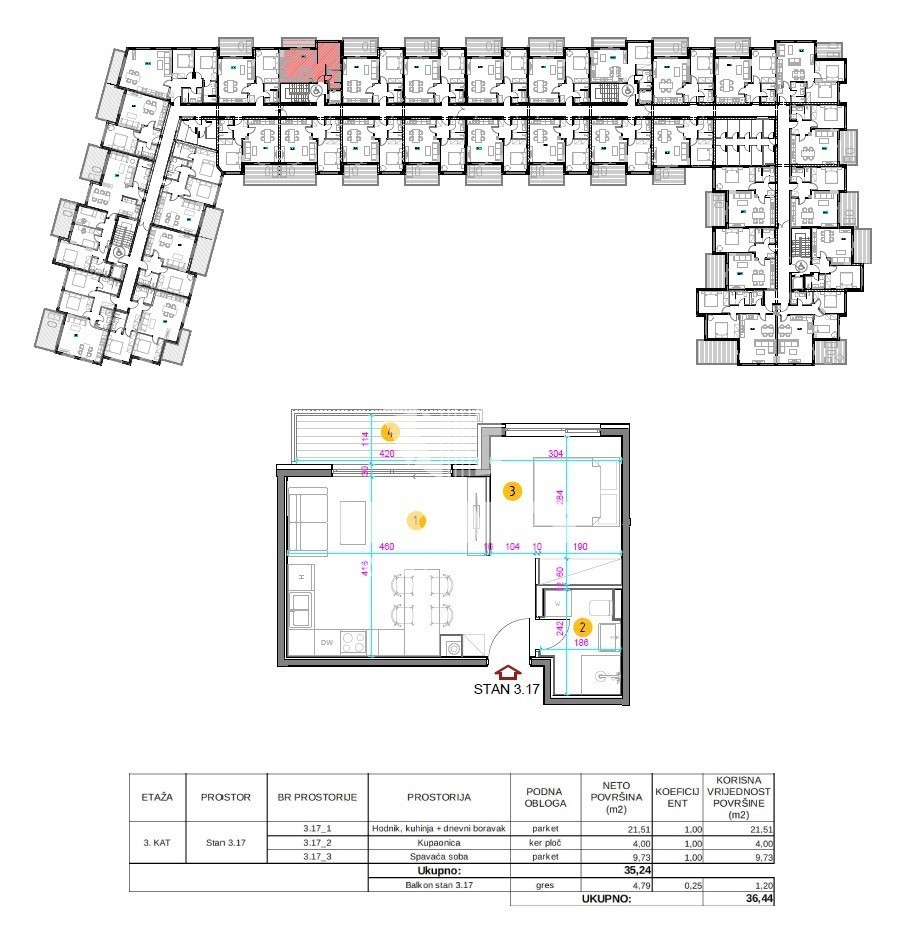Prodaje se stan s liftom u kvalitetnoj novogradnji u Umagu. Ukupna površina stana je 40 m2. Sastoji se od dnevnog boravka i kuhinje, spavaće sobe, kupatila i lođe. Pripada mu spremište od 3,75 m2 te jedno vanjsko natkriveno parkirno mjesto.