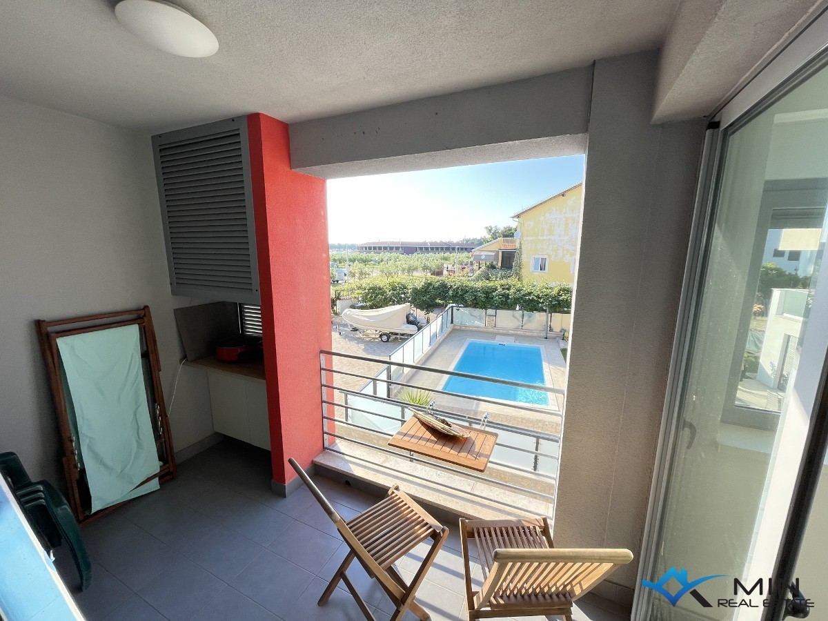 Prodaje se stan udaljen par minuta pješice od centra grada i 300 m od mora u Novigradu. Stan je smješten na 1. katu zgrade koja ima lift i ima 54 m2. Stan se sastoji od ulaznog hodnika, kupatila, spavaća soba, kuhinje s blagovaonicom i dnevnog boravka s izlazom na terasu s koje se pruža pogled na more i marinu. Stan se nalazi na odličnoj lokaciji te se svi sadržaji nalaze u blizini. Stan je opremljen klima uređajem, te mu pripada parkirno mjesto. Stan je moguće koristiti u stambene ili turističke svrhe. Udaljenost od Poreča i Umaga je 16 km, a vodeni park Istralandia udaljen je 4 km.