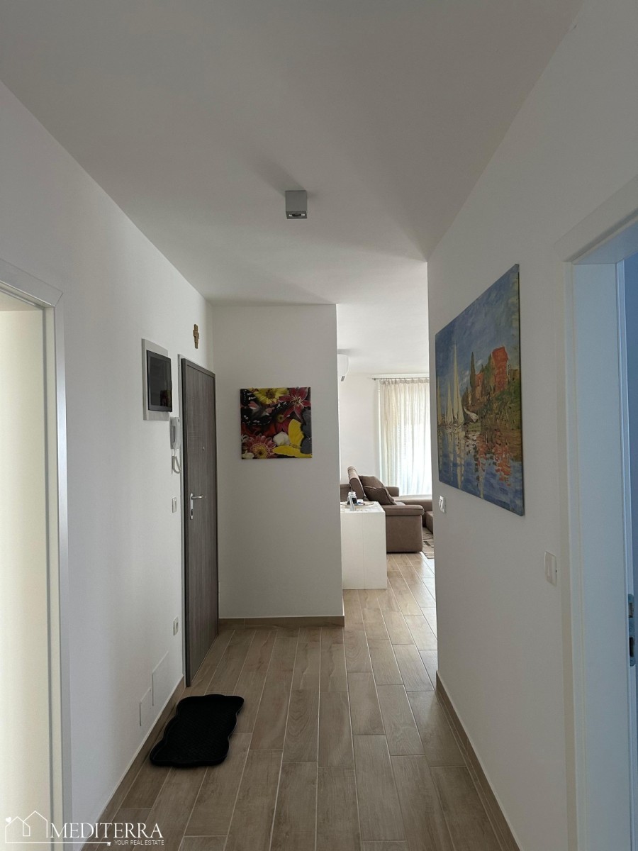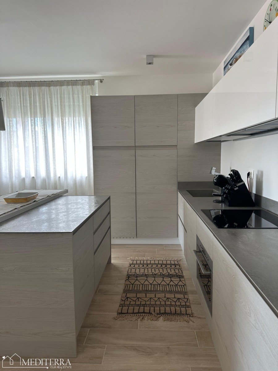 Stan je kvalitetno opremljen modernim i funkcionalnim namještajem, te je odmah useljiv. Uz stan dolazi i vlastito parkirno mjesto te spremište, što dodatno doprinosi praktičnosti i udobnosti stanovanja.