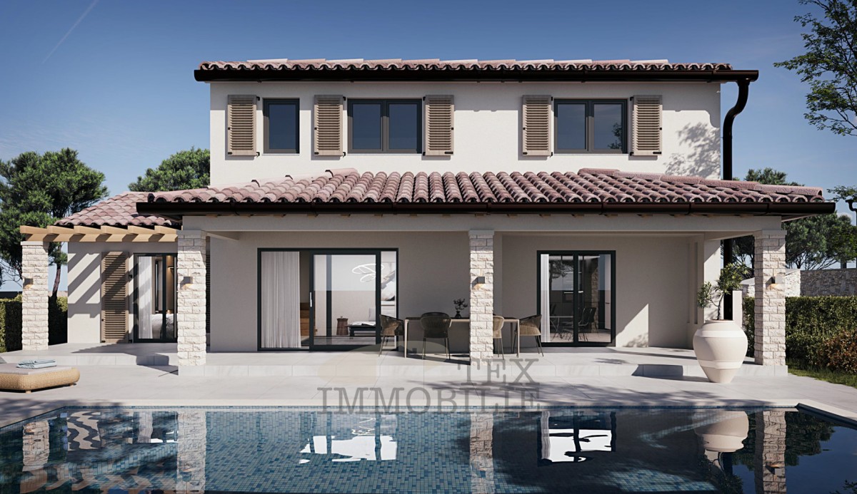 Prodaje se lijepa vila u roh-bau fazi u malom kompleksu od četiri samostojeće vile s privatnim bazenima. Vila predstavlja vrhunski spoj modernog dizajna i funkcionalnosti, smještena na parceli od 648 m², koja garantira privatnost i prostor za uživanje.