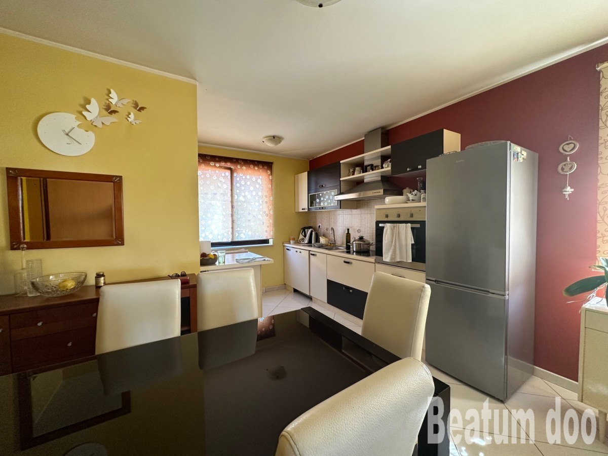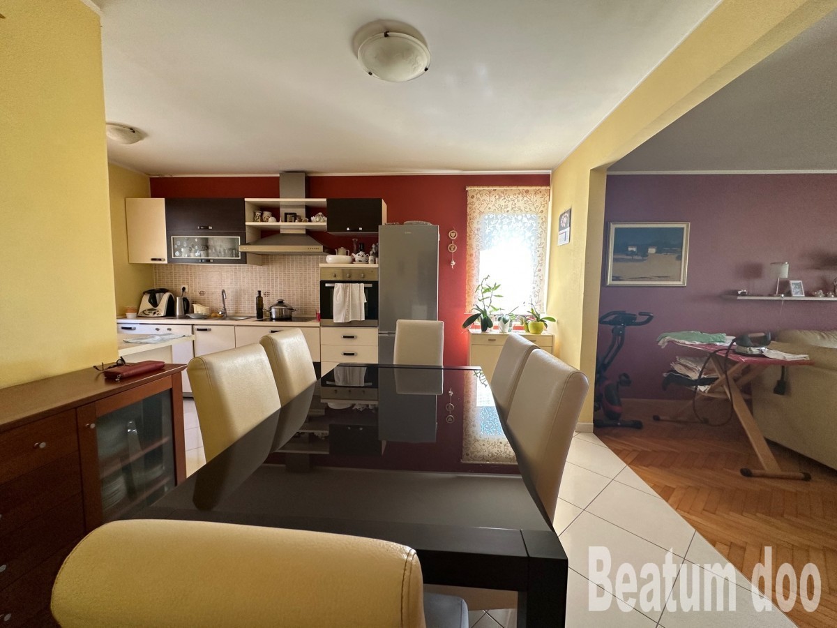 Stan je na poziciji koje se vrlo rijetko nude na prodaju . Trosoban stan ima prelijepi pogled na more , 2 min pješke do plaže , u mirnoj ulici , namješten , spreman za useljenje. stanu pripada Garaža 24m2 vanjsko parking mjesto ,