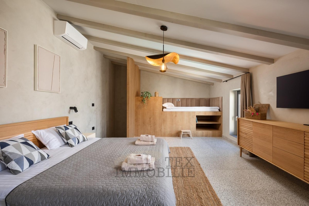 Kompletna renovacija provedena je s posebnom pažnjom na detalje, čime je postignut elegantan i suvremen interijer uz zadržavanje izvornog šarma kamena.