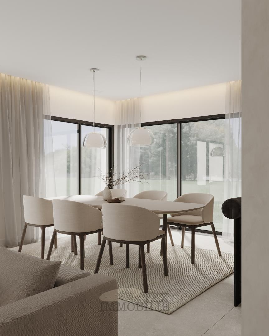 Materijali i oprema: Hans Grohe slavine i Geberit odvodni sustavi, talijanske ili portugalske keramičke pločice, elegantnu vanjsku rasvjetu i nadstrešnicu za dva vozila. Opcionalna nadogradnja poput solarnih panela, pametnih kućnih sustava i grijanih bazena zadovoljavaju individualne preferencije, osiguravajući doista personalizirano iskustvo življenja.