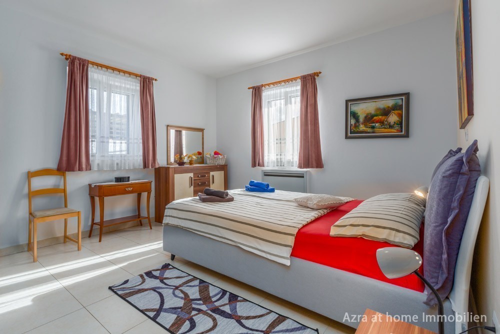 GRIJANJE : Sve prostorije u prizemlju ( suteren ) , osim spremišta, su opremljene podnim grijanjem a obje spavaće sobe imaju fenkojlere za grijanje i hlađenje.